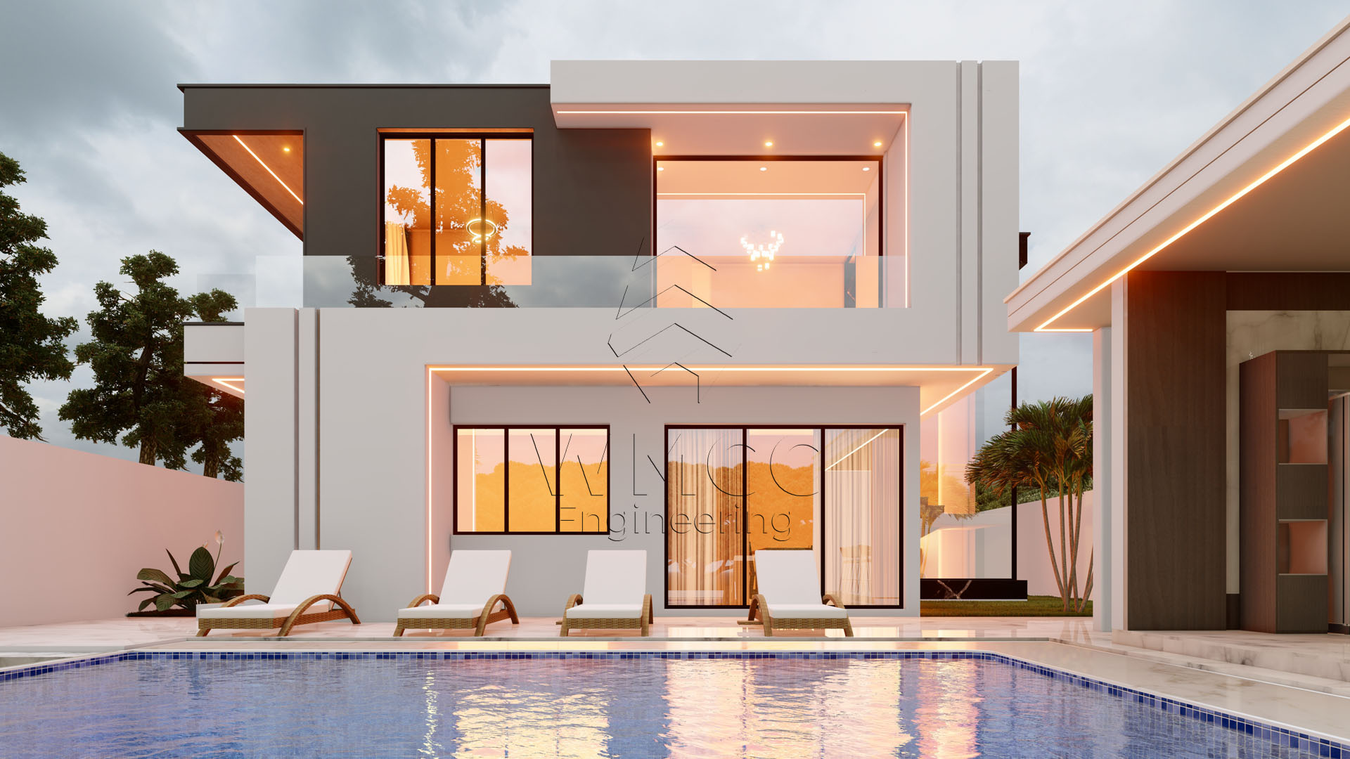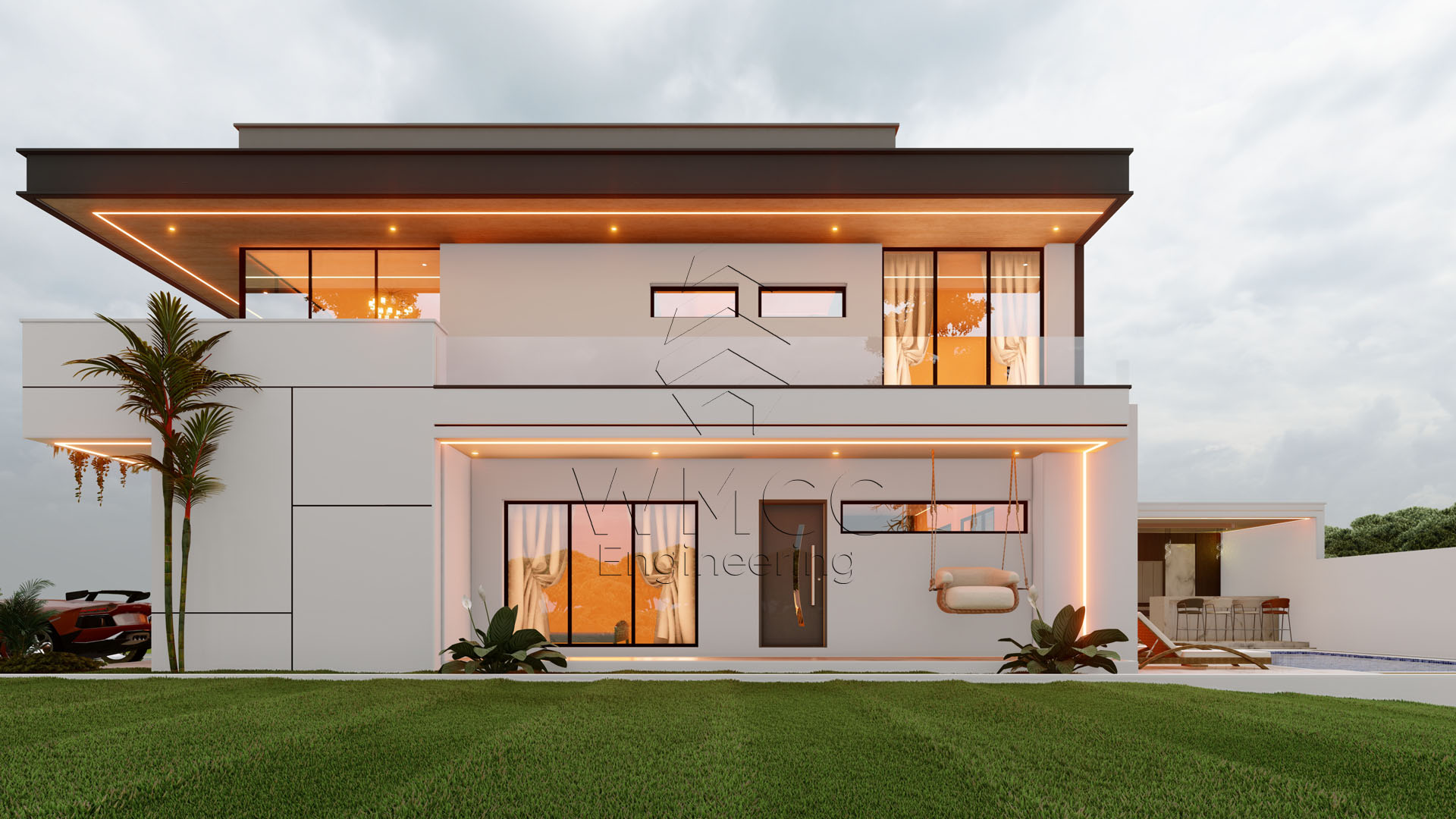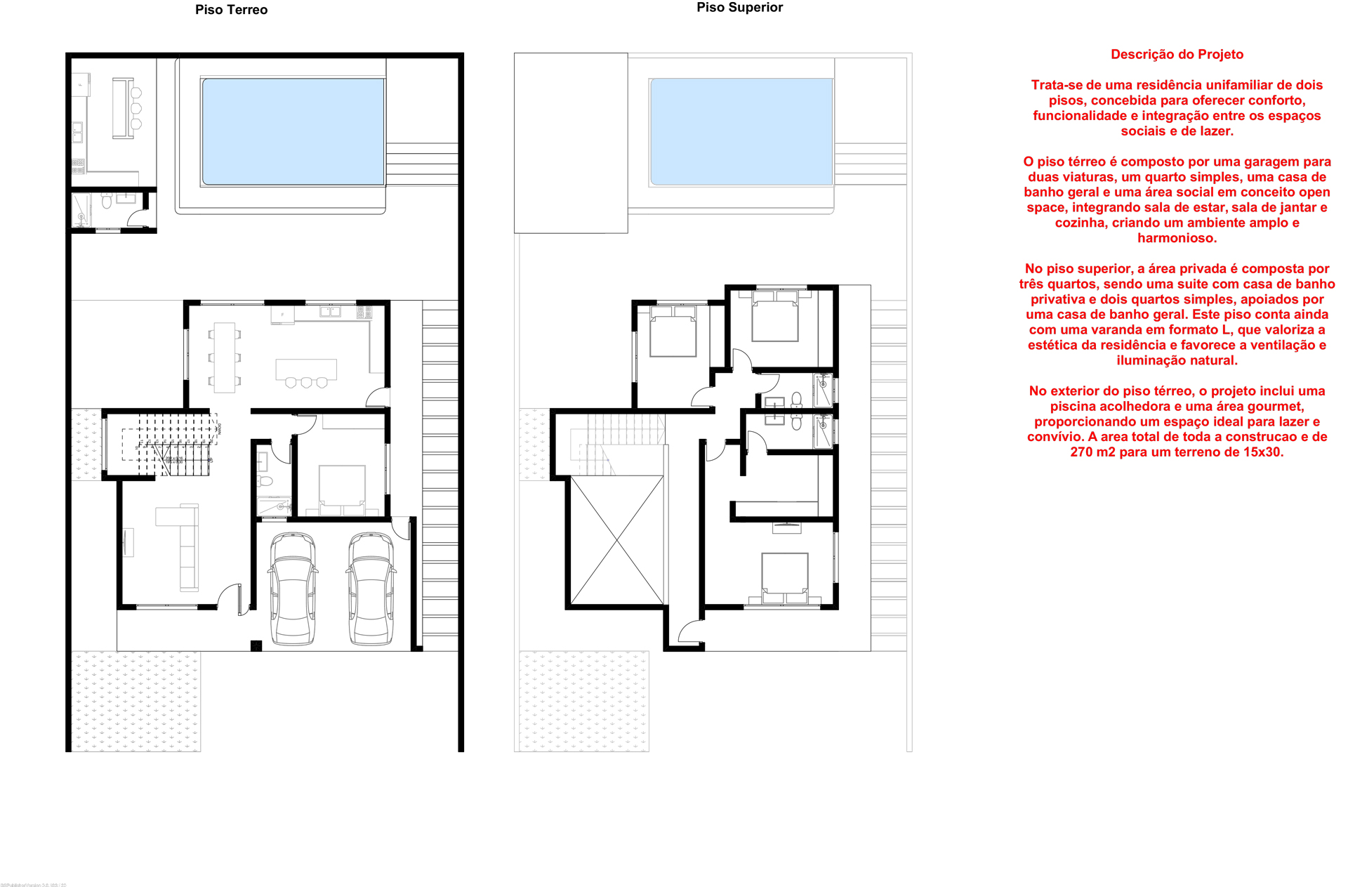 This modern two-story T4 residence is designed to deliver comfort, efficiency, and contemporary living within a compact footprint of 140 m². The layout maximizes every square meter, creating a functional and well-balanced home ideal for modern families. The ground floor features a bright open-plan living and dining area connected to a practical kitchen, forming a welcoming social space. It also includes a guest bedroom and a shared bathroom, offering flexibility for visitors or multi-purpose use. On the upper floor, the private area comprises four bedrooms, including a comfortable master suite, supported by additional bathroom facilities. The design ensures privacy while maintaining good natural lighting and ventilation throughout the spaces. Despite its compact size, this residence offers a smart distribution that combines practicality and modern style, making it an excellent choice for those seeking an affordable yet elegant family home.