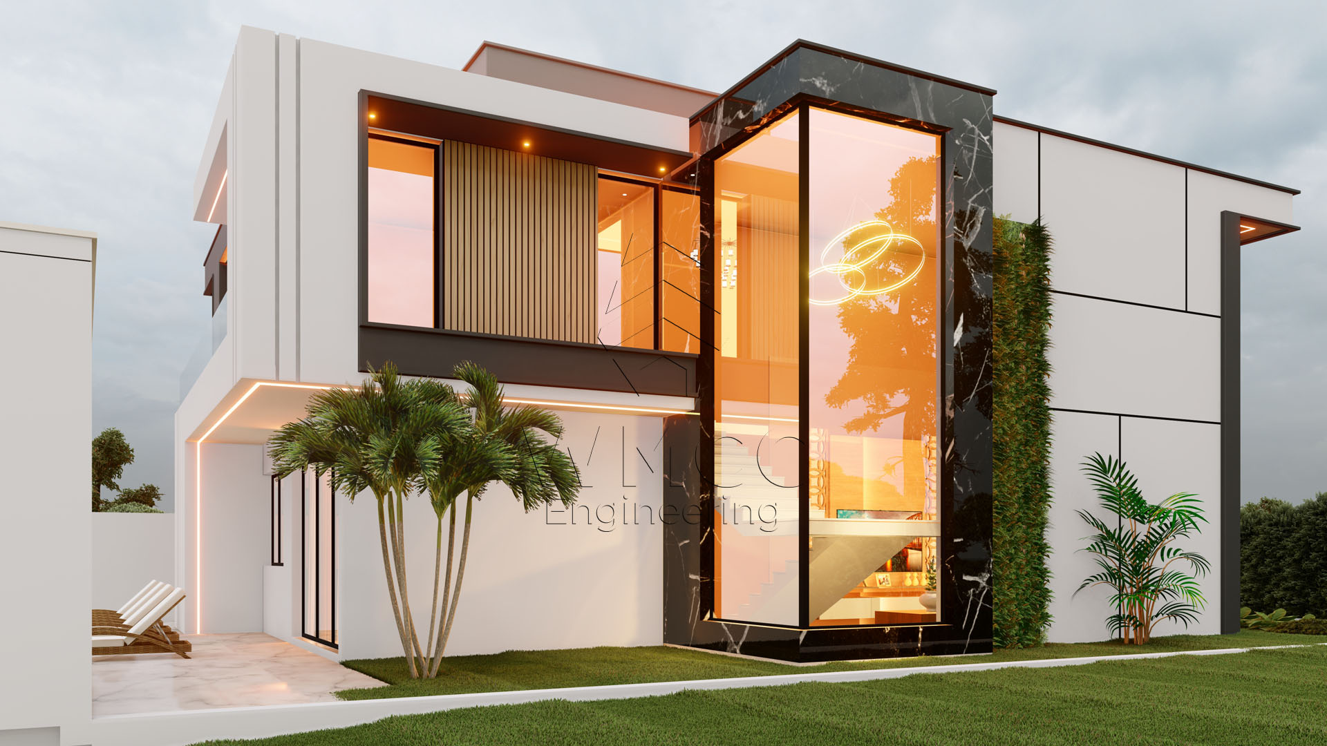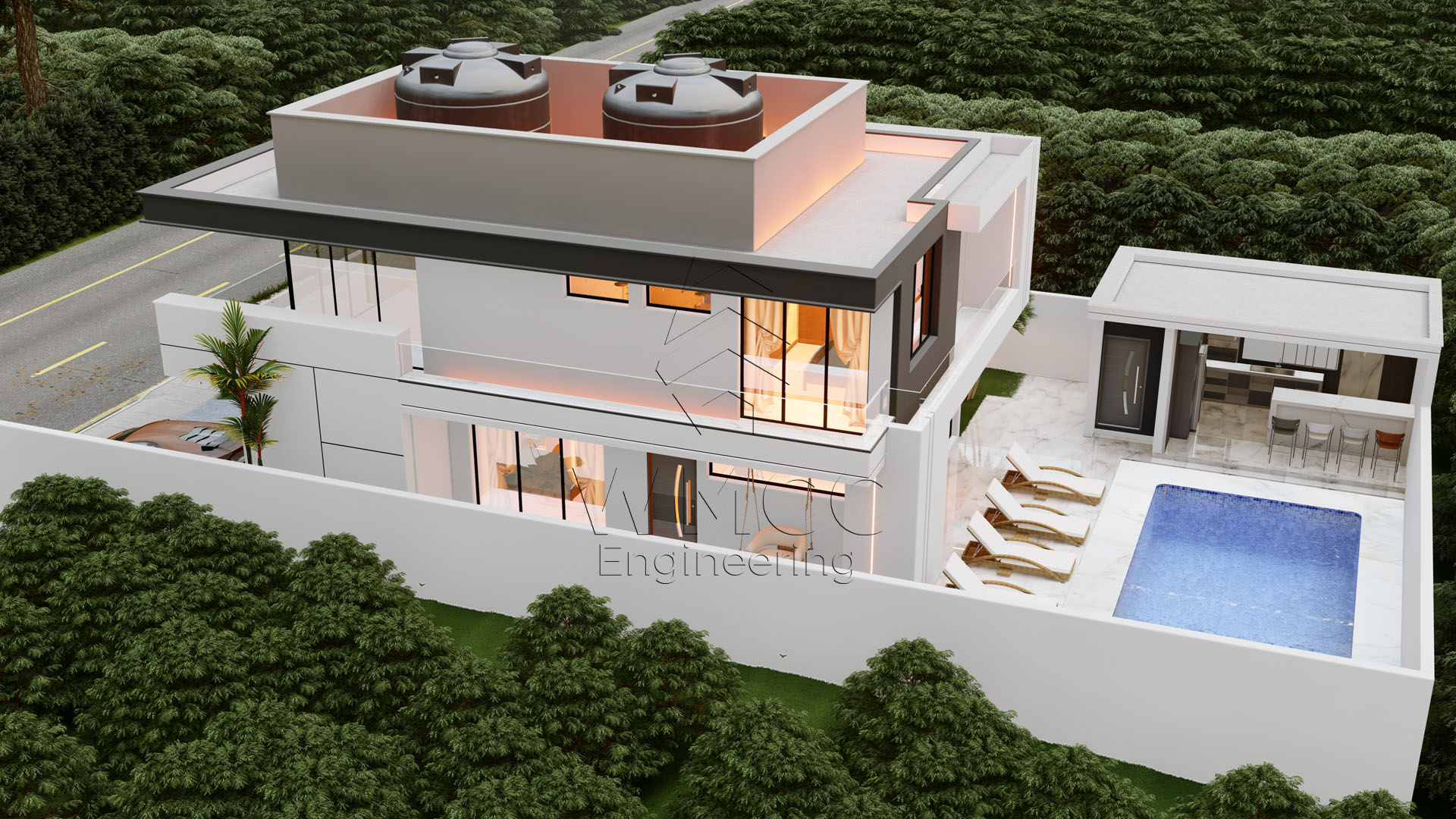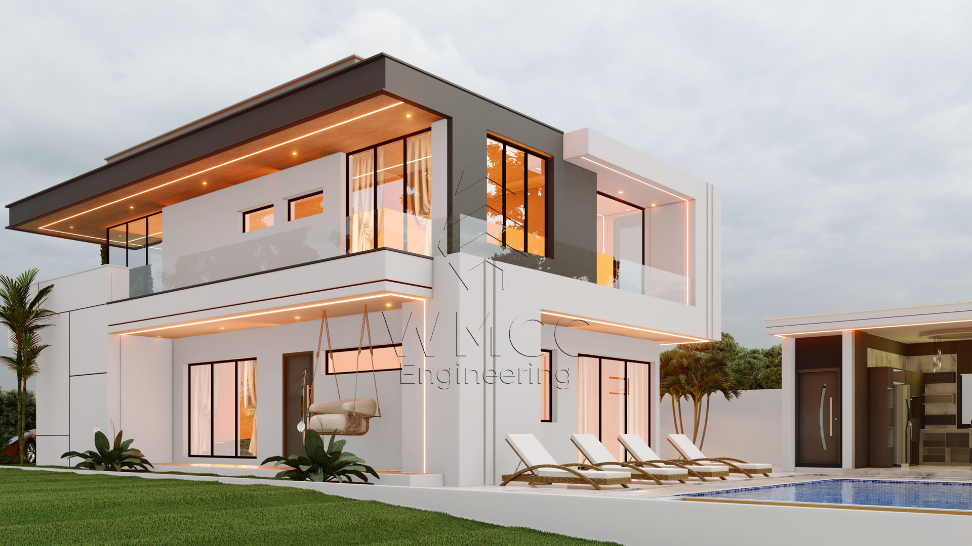 This modern two-story T4 residence is designed to deliver comfort, efficiency, and contemporary living within a compact footprint of 140 m². The layout maximizes every square meter, creating a functional and well-balanced home ideal for modern families. The ground floor features a bright open-plan living and dining area connected to a practical kitchen, forming a welcoming social space. It also includes a guest bedroom and a shared bathroom, offering flexibility for visitors or multi-purpose use. On the upper floor, the private area comprises four bedrooms, including a comfortable master suite, supported by additional bathroom facilities. The design ensures privacy while maintaining good natural lighting and ventilation throughout the spaces. Despite its compact size, this residence offers a smart distribution that combines practicality and modern style, making it an excellent choice for those seeking an affordable yet elegant family home.