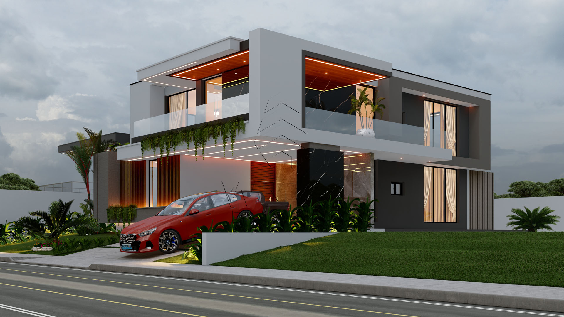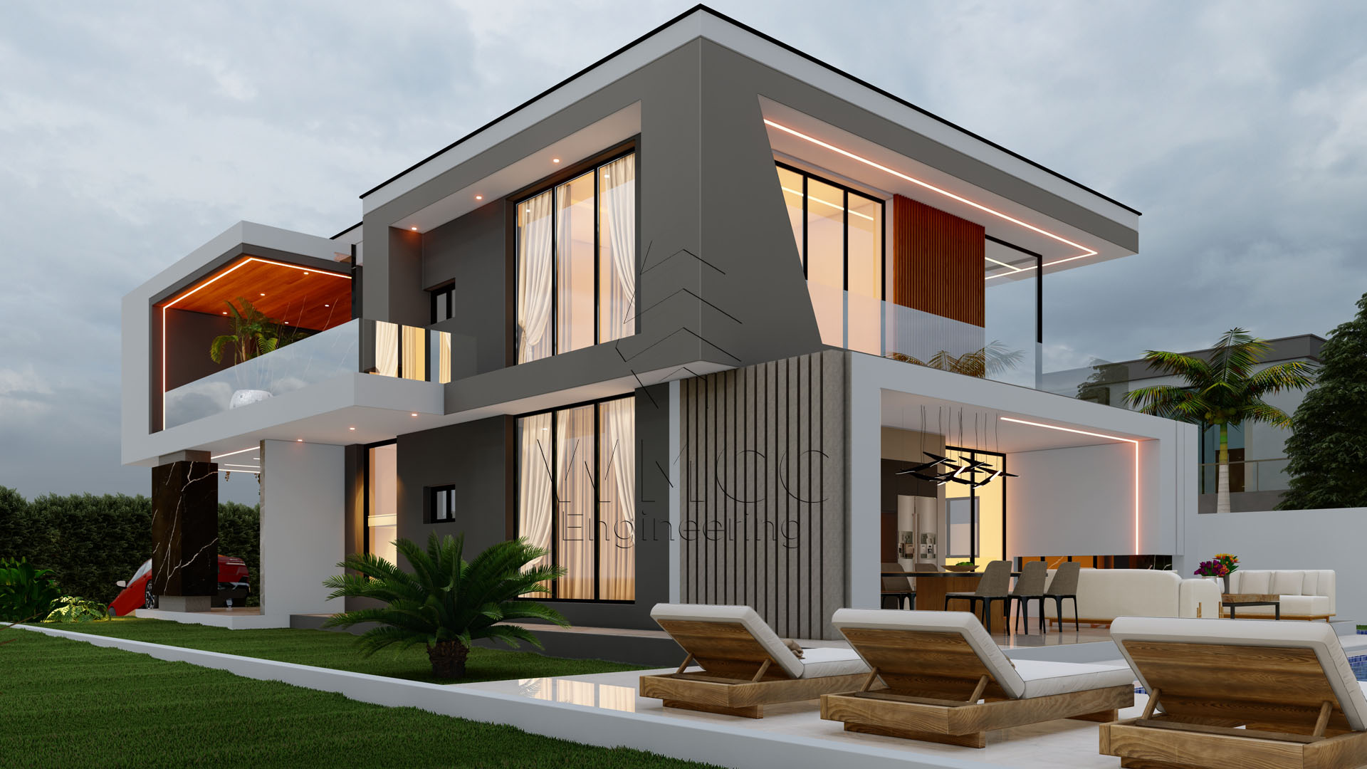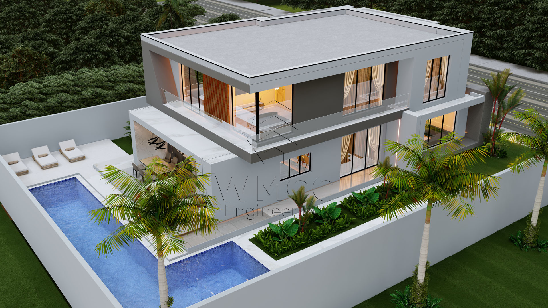 This contemporary Type 4 residence is designed to offer comfort, space, and a seamless connection between indoor and outdoor living. Spread across two floors, the home combines functionality with a refined modern layout, ideal for family living and entertaining. The ground floor features a spacious open-plan living area that integrates the living room, dining space, and kitchen, creating a bright and welcoming environment. It also includes a private suite, a shared bathroom, and a garage for two vehicles, ensuring both convenience and flexibility. Upstairs, the private area consists of four bedrooms, including a master suite, supported by additional bathroom facilities. The layout is designed to maximize privacy while maintaining a sense of openness and comfort. The exterior stands out with a beautifully designed leisure area, featuring a swimming pool and a dedicated lounge space, perfect for relaxation and social gatherings. With a total construction area of approximately 263 m², this residence is an excellent choice for families seeking a modern, spacious, and well-balanced home.